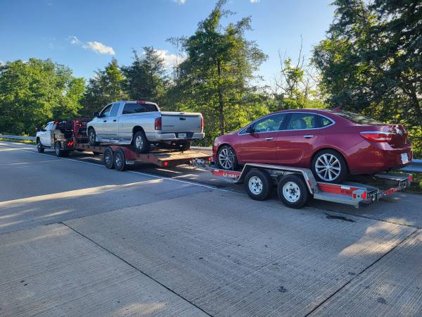 Professional car, light & medium duty truck towing on a low 24' flatbed trailer. $98 load fee + $2.40/mile (10 mile minimum) cash price, cards accepted no discount. $125.00 minimum cash price.