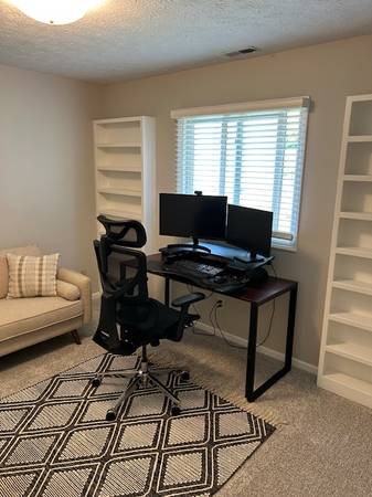 Stylish, fully furnished condo with modern décor in a quiet neighborhood. Main bedroom features a queen set; second bedroom doubles as a home office. Living room includes sectional, wall-mounted TV, and ottoman. Dining area includes table and chairs, and the kitchen is fully equipped (incl. cookware). In-unit washer/dryer, central HVAC, and private patio. Rent: $1,325/month + utilities. Deposit: $2,000. Tenant pays electric, gas, water/sewer, trash, and internet (negotiable). 12+ month lease preferred; shorter terms considered. Background/credit checks required. Small pets considered with deposit. No smoking. Near parks, shopping, dining, and I-65. Assigned parking included. Contact us today to schedule a showing!