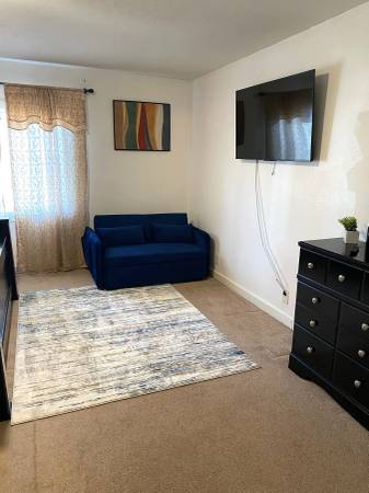 This rental has complimentary coffee, smart TVs, free street parking, and Wifi!
