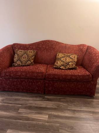 Beautiful cherry red couch with a subtle floral pattern. Gently used and in great condition. Available for pick up or delivery. Need it gone ASAP, $180 or best offer!