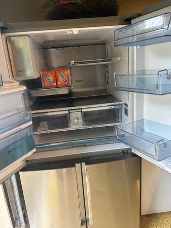 Used Samsung refrigerator/freezer for sale. Works just fine with some dings/dents in the front. Water dispenser works good as well.