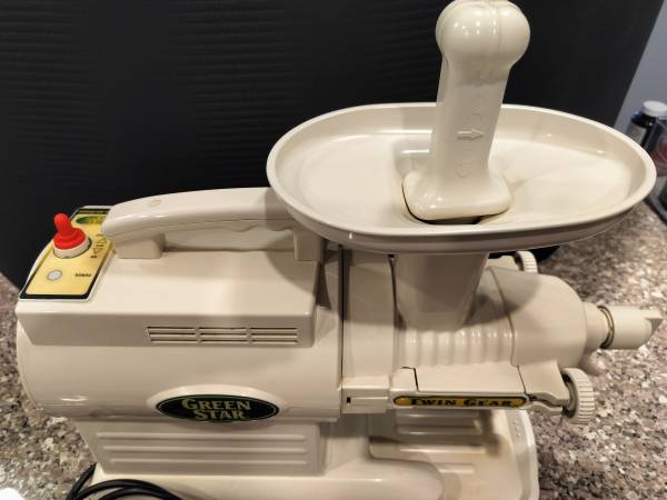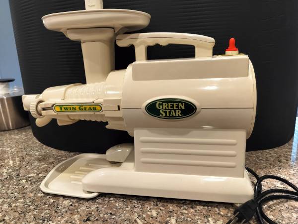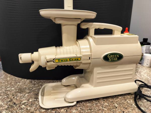 A link to Amazon below, selling for $449, so a good way to get a juicer really cheap. We use a Pyrex 2-cup measuring cup to catch the juice, which is much more shatterproof than the glass bowl that they come with. Price reduced to $60