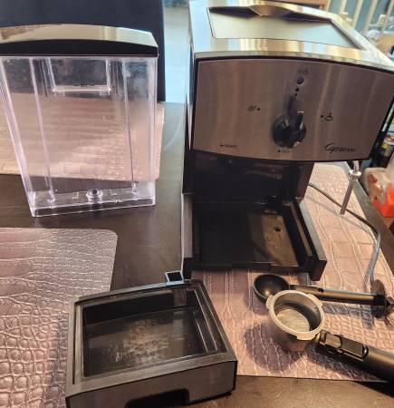 Includes portafilter, scoop/tamper, drip tray, and water tank
