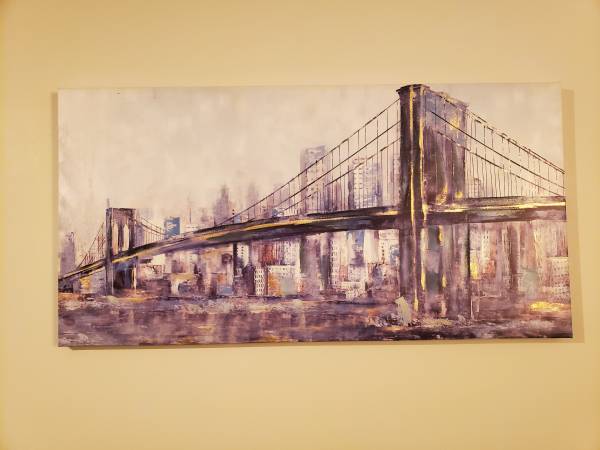 Beautiful Big Canvas ART 30''x59'', describing a City Downtown. READY for hanging. This's for JUST $40 (cash only). It's GOOD for living room, basement, office, shop etc.