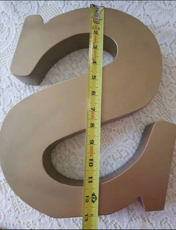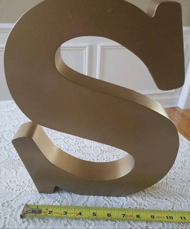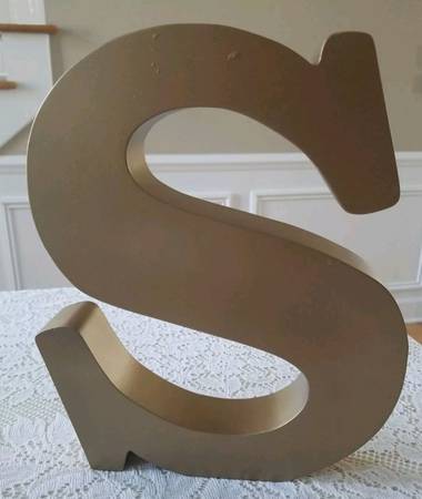 Gold Wooden Initial Letter S Sculpture Free Standing/Tabletop/Wall Home Décor 13in x 2in x 11in. Party/wedding/shower decor. See photos for further detail and minor paint blemishes, could also...