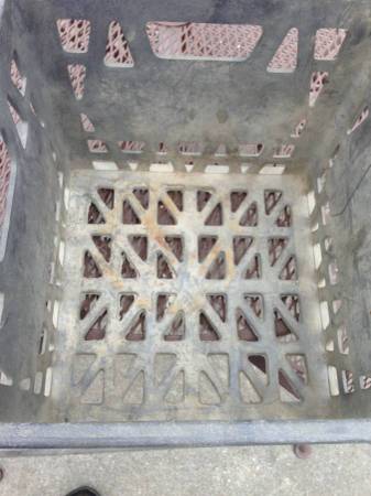 Sale $25.00. Maplehurst plastic milk crate. It measures 13" X 13" and is 11" tall. It has white lettering on a gray crate. Reference crate four.