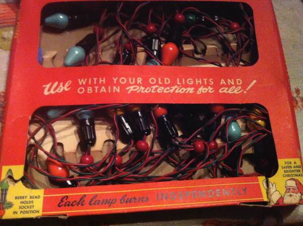 1950s Noma brand Christmas lights in colorful original box. "The Fuse Does It!" 20 lights. $18.