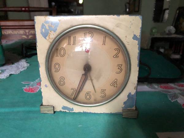 Very cool art deco electric clock, ca. 1940. Did work, but does not now, suspect it just needs a cord replacement but I'm no expert. Cost me a lot more, but at present, it's only $7 if you want to try to get it running again. I'll listen to offers.