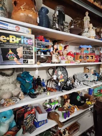 • Toys / Games / Novelty: Barbie dolls, Playschool, a retro Marx style tin litho ranch, dollhouse, glass marbles, model train parts, vintage dolls, Tonka, & More