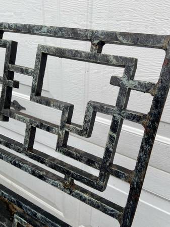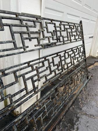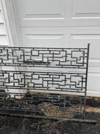 Selling this MCM room divider from the 1960s. It is constructed of cast iron and is in great shape. Please note that in the pics, it is laying on its side. It has a longer side and a shorter side such that the pole (longer side) attaches to the floor and ceiling while the shorter side attaches to a wall. See last pic for dimensions. It is a modernist piece with an abstract geometric brutalist design. This piece is very heavy and solid (about 100 pounds or more). Asking $750 for this; open to reasonable offers. Cash and local pick up in Indy near Allisonville Road and 62nd Street. Please call or text John at show contact info