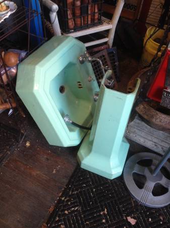 ANTIQUE JADEITE GREEN PEDESTAL BATHROOM SINK W/FAUCETS - antiques -...