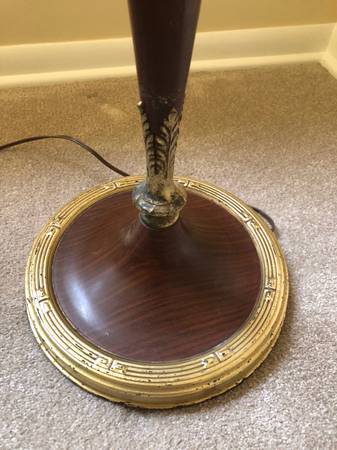 Rembrandt floor lamp, 3 way center light with 3 candelabra lights with separate 3 way switch. Brass and iron construction.