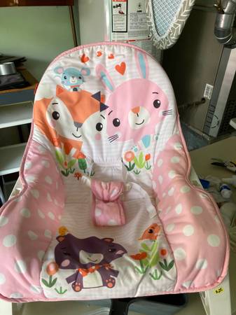 Soothing Vibrations infant bouncer relaxes and gently bounces baby to sleep. Fabric cover easily removes for machine washing.