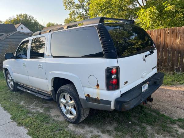 Z71 package. 5.3 flex fuel , 4x4 works flawlessly, good oil pressure, has brand new trans with 100k on it so far have paperwork on it, also have receipts for everything else, new master cylinder, new alternator, new water pump, new intake gaskets, new valve cover gaskets, new mass air flow sensor, new brakes and calipers and rotors and wheel bearings, new ujoints, new taillights and headlight bulbs, new heater core, has msd 2step box with 3 inch purple hornie Glasspack ,has TVs in headrest, with DVD player, sunroof works Clean title in hand. Drive it home! Comes with sound system as well if you want it. Will trade for a cammed Silverado ext cab 4x4