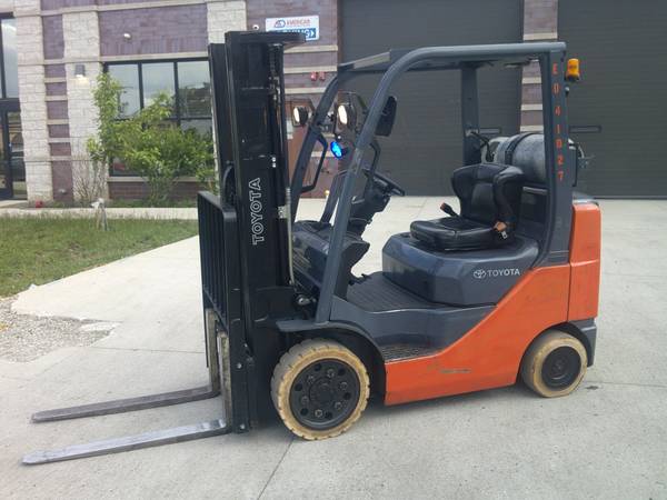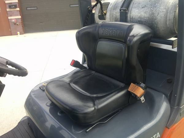 5K LB. Capacity Toyota Forklift, Model # 8FGCU25, traction non-marking tires, propane powered, only 2840 hrs., one owner, very well maintained, digital display, lights, strobe light, back up alarm, premium seat, turn signals, dual mirrors, front & rear blue safety spotlights, triple tier mast, lifts 15'-9" high, side shift, 48" forks, lbr., 4th function lever, plumbed to the carriage, come take a look at the warehouse, we can deliver, propane tank is extra, asking $11,945., contact is Tim.