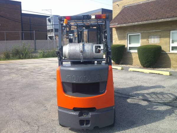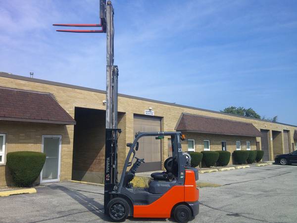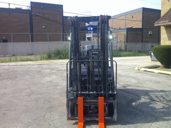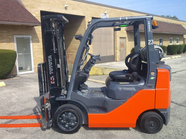Toyota 5K LB. Capacity Forklift, Model # 8FGCU25, propane gas, new cushion tires installed, no leaks or issues, 2840 hrs., triple tier mast, max lift height is 15'-9" high, side shift, 48" forks, lbr., digital display, lights, strobe light, back up alarm, premium seat, dual mirrors, turn signals, green side running lights, front blue safety spotlight, ready for duty, we can offer delivery, asking $11,960., contact is Tim.