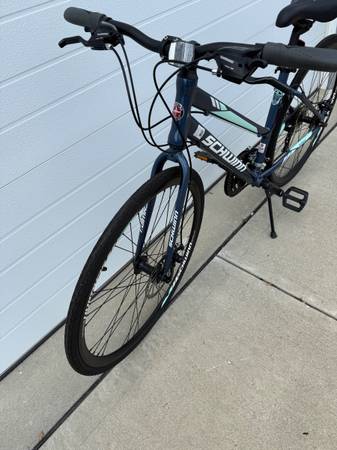 Schwinn Circuit Ladies Fitness Frame Hybrid Fitness Bike with 21 Speeds and Disc Brakes. This belongs to a neighbor who was transferred. I Am Also Selling The Male Version As Shown In The Last Photo And Will Make Deal If You Want Both. The bike is like new. Message me if you want it.