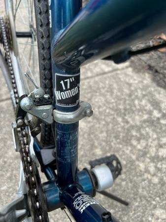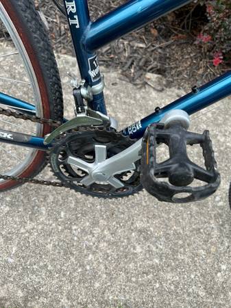 Nice ladies trek multi track sports 700. 17 inch or medium Cro-moly steel frame lightweight but rigid. Aquamarine paint is beautiful with the dark brown mocha hybrid tires. 700c rims and hybrid tires. Nice bell memory foam gel seat very comfortable for those long rides. 21 speed Shimano drivetrain with grip shifters in perfect tune! Bike comes with brand new kickstand already installed! Bike has been cleaned and tuned which includes a safety check. Asking $100 cash OBO. Feel free to text or email with any questions you might have or to set up an appointment to test ride.