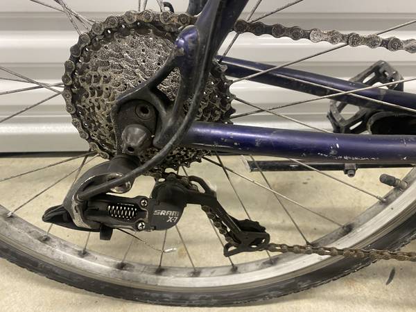 Liahona Mountain Bike 20” aluminum frame is in nice condition 26” wheels with strong rims and mechanical disc brakes. Shifts and brakes well. SRAM X-7 drive train Tuned up and ready to ride.