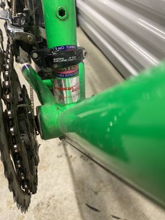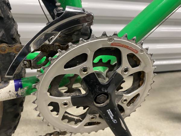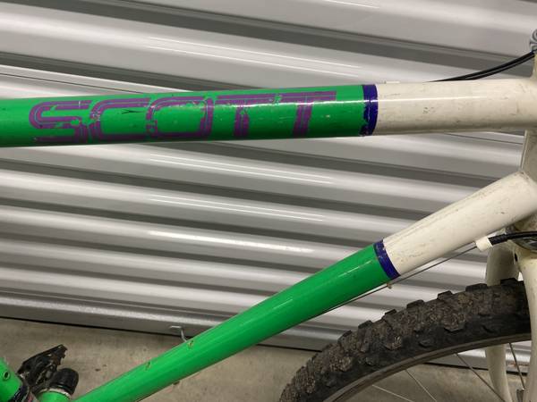 Scott Mountain Bike 18” lightweight frame with vintage green coloring Scott brand handlebars as well. Shifts and brake well. Shimano Deore LX drivetrain as brakes. Tuned up and ready to ride