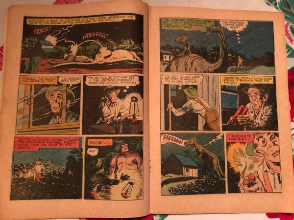 DINOSAURUS - Dell "Movie Classic" comic, based on the 1960 film and copyrighted 1960. Great cover art. 32 full color pages, inside cover shows stills from the film. Comic is intact and tight. Slight gouge on the cover barely visible. Reduced to $15.
