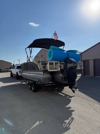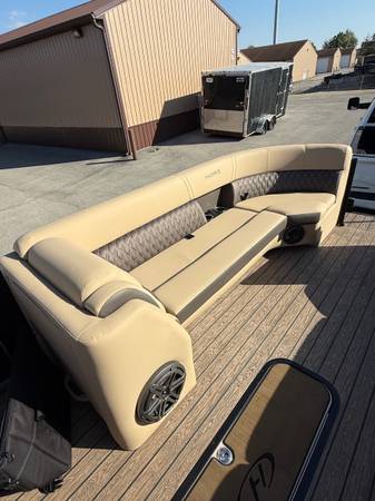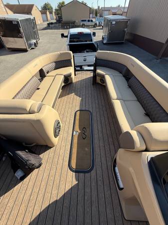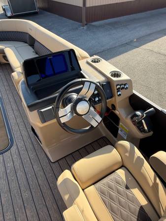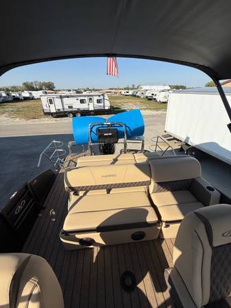 Selling our 2024 Harris Sunliner 250 Tritoon. Bought Brand new last year. MSRP was $120,847. This comes loaded with many extra options including the SLDH interior setup ($1,540), Matte Black Exterior with powder coated fence ($1,616), Chestnut Brown interior ($1,780), Contour Black Electric Retractible Bimini Frame ($1,581), JL Diamond Premium Sound System ($4,511), 325 Chassis package ($7,630), 28 Gallon Fuel Tank, Stadium Motor Pod, Reinforced Nose Cone, In-Floor Storage, Mercury 200L FourStroke Dts/Pas V6 4.8 (includes Power-Assist Steering, Digital Throttle and shift, and Mercury ActiveTrim -Valued at $31,043), Convenience Package ($2,025), Interior Lighting Package, Tech Package 2 ($8,272), Stainless Steel Grille for cookouts, Simrad NSX9 ($4,160), Wireless Built-in Phone Charger ($320), Safety Rail Setup with Ski Tow Bar ($1,353) and several other options not listed. Comes with a Heritage Custom Built Trailer which cost $9,000. Asking $90,000. show contact info