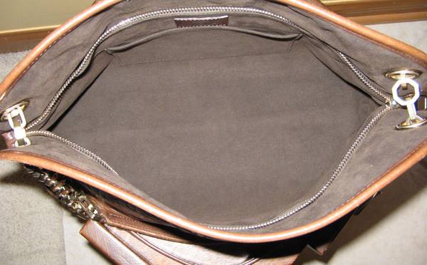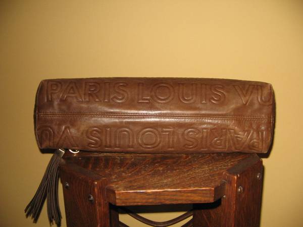 This is an authentic LOUIS VUITTON monogram embossed tote. 14" long by 10" high and 4" deep. Limited addition. Automne-Hiver 2008 Collection leather shoulder bag. Chocolate brown leather, features heavy bijoux chain with shoulder pads, and matching Alcantara microfiber interior. This bag was $3,200.00 plus $224 in tax.
