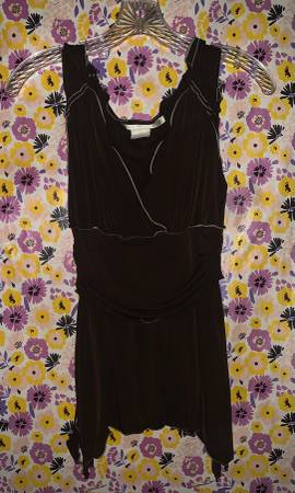 Max Studio fit and flare top V-cut sleeveless Brown with some light pale green color trimming Size med 95% polyester, 5% spandex