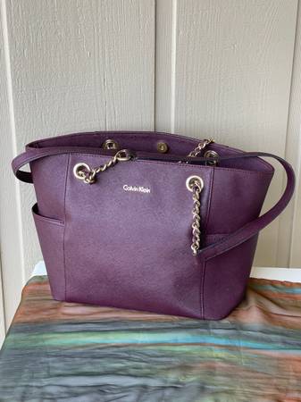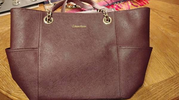 Interior: one zip pocket, two slip pockets, and Calvin Klein logo lining