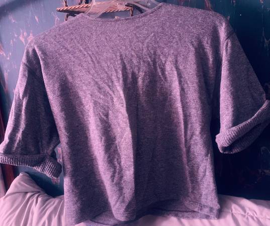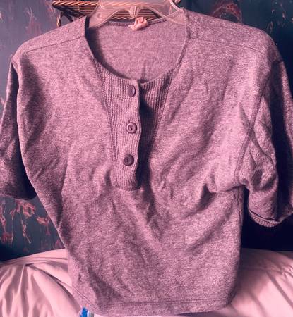 Cute upper 3 button V sport crop top Grey Lightweight Comfy Great condition besides the wrinkles!