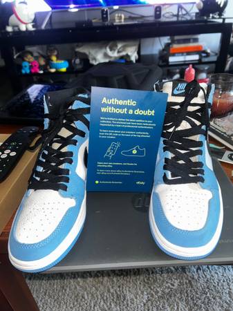 Jordan 1 Retro High OG University Blue size 7 men’s size 8.5 women’s 10 out 10 condition No original box These are 100% authentic and have been authenticated by eBay Size 7 in men’s Size 8.5 in...