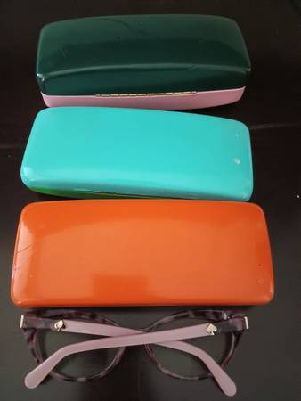 Kate Spade brand hardshell eyeglasses cases with an additional pair of reading glasses from the same brand. There's a few marks on items from normal use and are from a smoke free home. Price is firm.