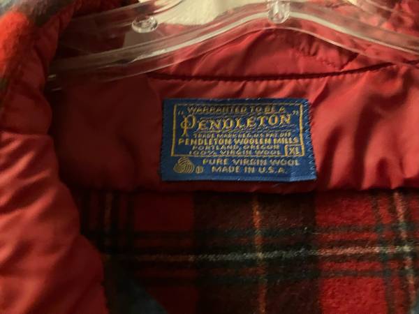 Beautifully made pure virgin wool red plaid shirt. "Man's" buttoning (left over right), so the XL must indicate a boy's size XL. It conforms to women's size M. Barely worn at all. Great for walking...