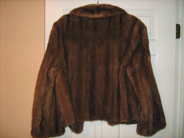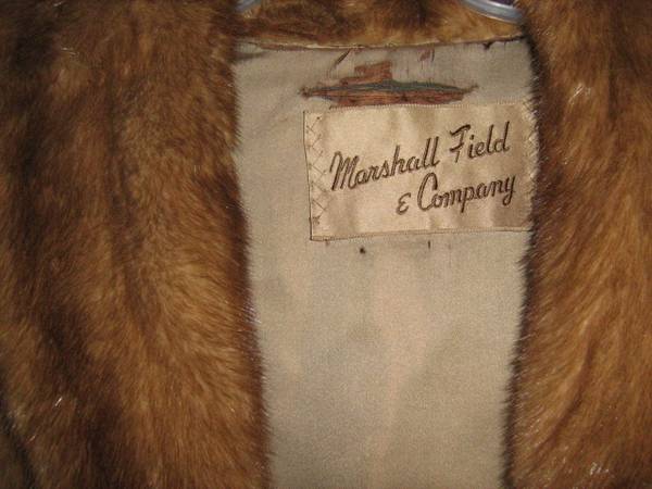 This is a vintage Marshall Field's brand mink fur coat from the 1940s that once belonged to my grandmother. It's in very good condition (with a couple of defects - see next sentence) and appears to be size medium (length is about 28 inches and the width is about 19 inches at shoulders). The inside lining along the bottom of the coat has detached from the fur material, there are some tears around the tag of the coat (see second photo), and there is a small hole under one arm of the coat. All these defects are likely fixable and the lining could be replaced if you wanted to do so, but I am selling it as is.
