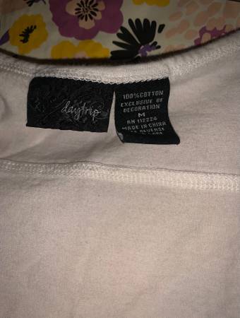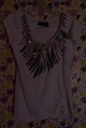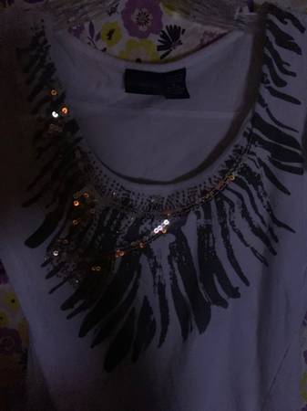White top "Daytrip" Brown bead dazzling gold sequins upper Lightweight 100%cotton Pleaded lower side Size med