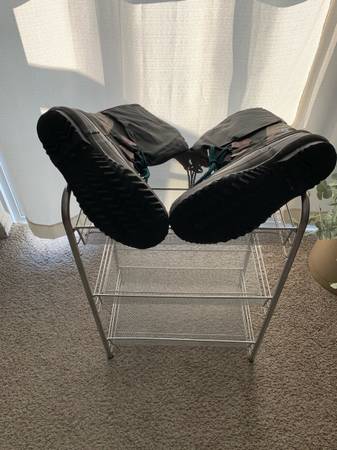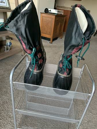 These boots have zero miles on them, I’d say they got more feet in them at the store. Waterproof, insulated, warm, fashionable, to some..We will accept PayPal, Venmo, and preferably cash. Please note if paying with cash bring the correct amount or plan to tip upwards ;) sorry the free rack offer has expired, you may find it at Goodwill now, but the boots will keep your feet warm and dry , and yes these boots are made for walking:)