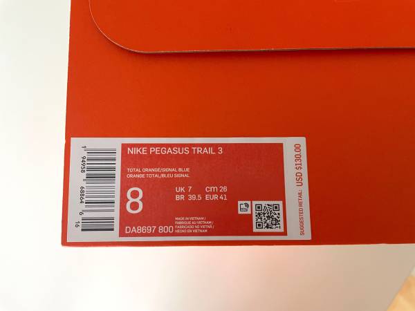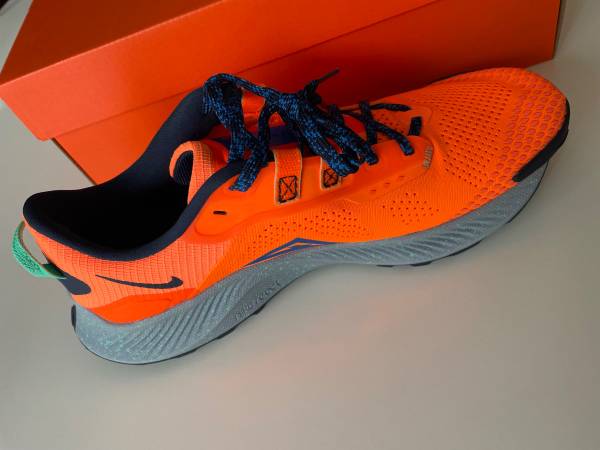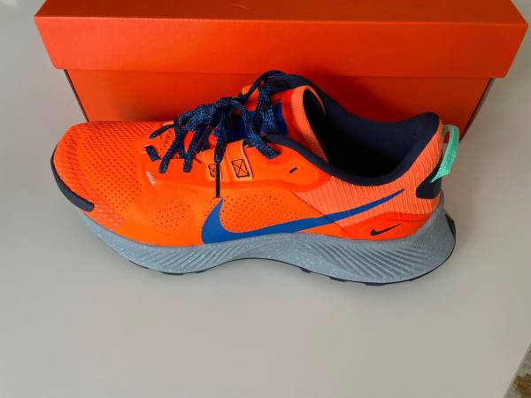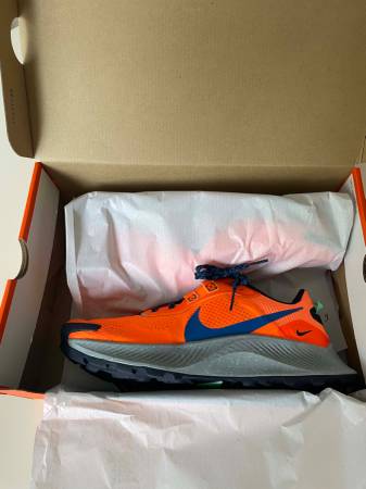Brand new, never worn, Nike Pegasus Trail (Men's 8) Running Shoes (Total Orange & Signal Blue). Box included.