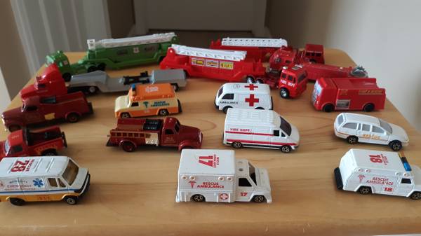 27 toy fire and rescue vehicles some plastic some metal SEE IMAGES