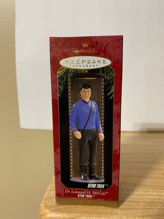 This 1997 Hallmark ornament Dr. Leonard H. McCoy played by actor DeForest Kelly Hallmark Keepsake Ornament is mint and has never been taken out of the box.