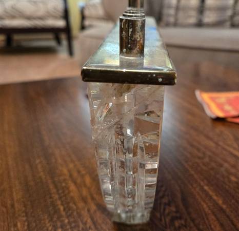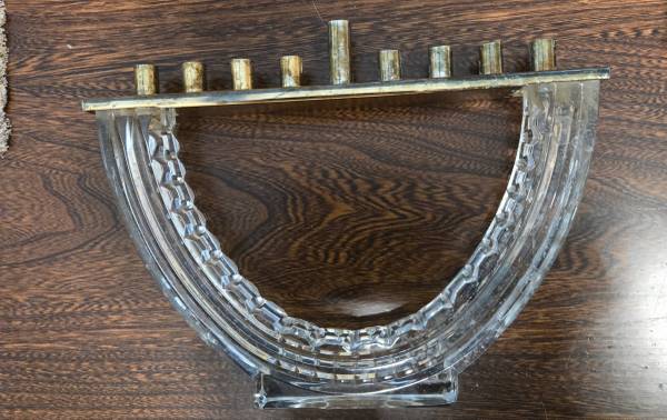 Beautiful Waterford crystal menorah purchased at Harrod's Dept. store in 1990. As shown in picture, there is a small crack on the side that has been repaired, and if I hadn't shown it in the picture, you'd never even know it's there. A really beautiful piece. Original retail $495. Yours for $95 OBO