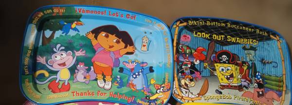 SpongeBob SquarePants and Dora 2003 doggies and kitties TV trays from my children just cleaning out the garage $10 each 12 in x 18 in