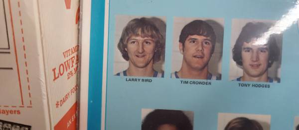 Larry Bird 1976-77 Indiana State University sycamore's team picture laminated American scene company Vincennes Indiana 12x18 in