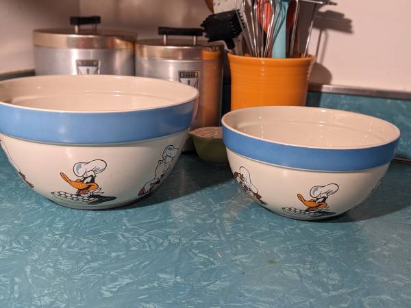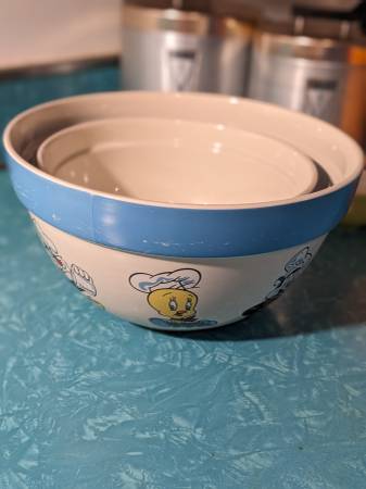 Set of two Looney Tunes bowls 10.25" and 8.125". Tweety Bird, Bugs Bunny, Daffy Duck, the Tasmanian Devil, Pepe Le Pew, Elmer Fudd
