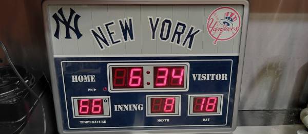 New York Yankee digital clock with temperature and calendar 15 in by 25 in clock