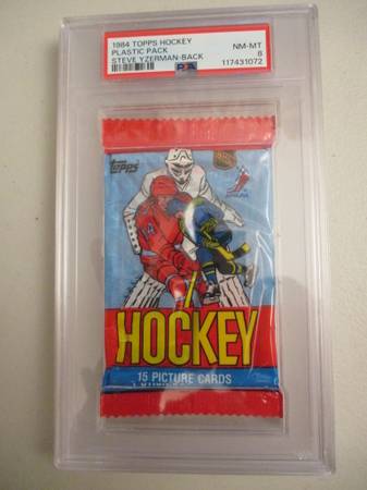 Just received this back from PSA (certification #117431072), so the plastic case is in excellent condition. Think about this: A pack like this that has Yzerman's rookie card visible through the back of the pack is much rarer than a standalone Yzerman card.