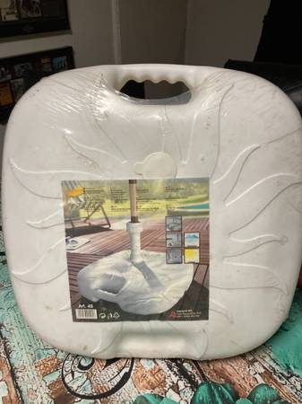 Kamenitza Beer Beach Umbrella with stand 7’ H X 5 12’ W. The stand is designed to be filled with either playground sand or water for stability.