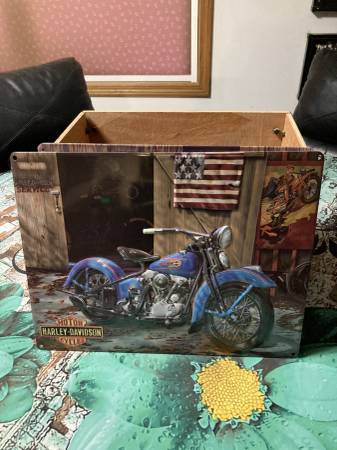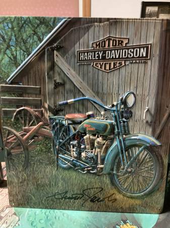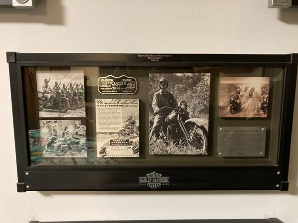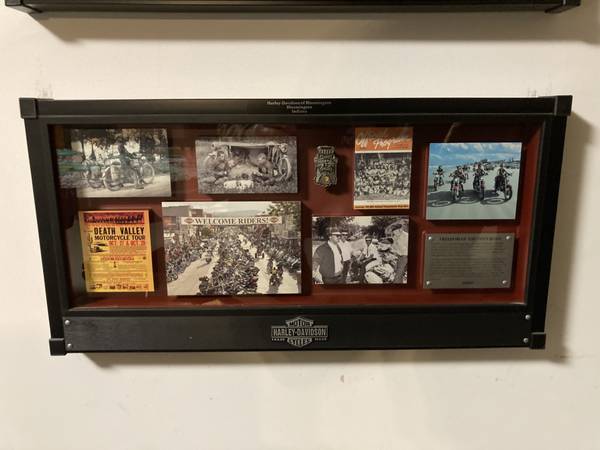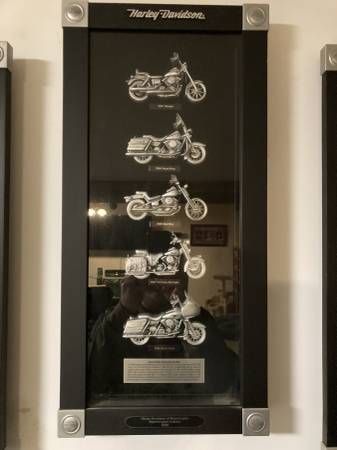 These customer appreciation gifts from the dealerships are for the really true die hard Harley enthusiast. There are five wall mounted, framed shadow boxes sequentially from 2007 to 2011, a HD shipping crate and HD flag. Additionally, this deal included three metal signs with vintage portraits of HD motorcycles.