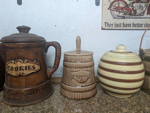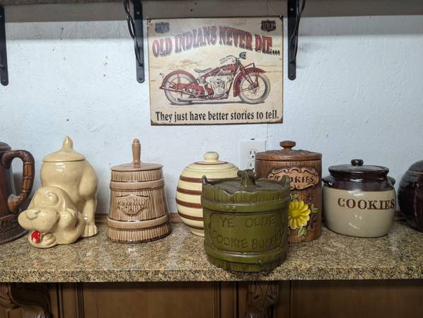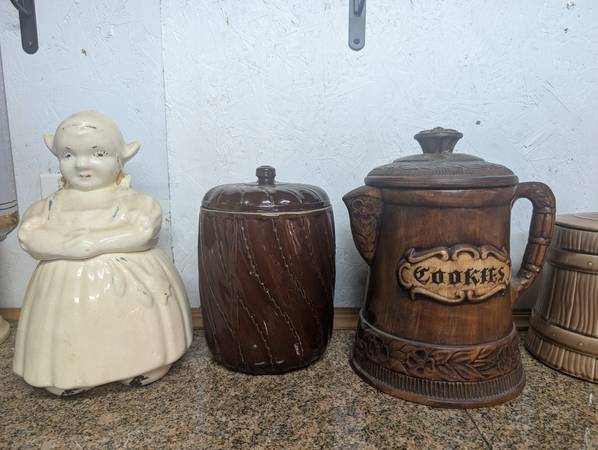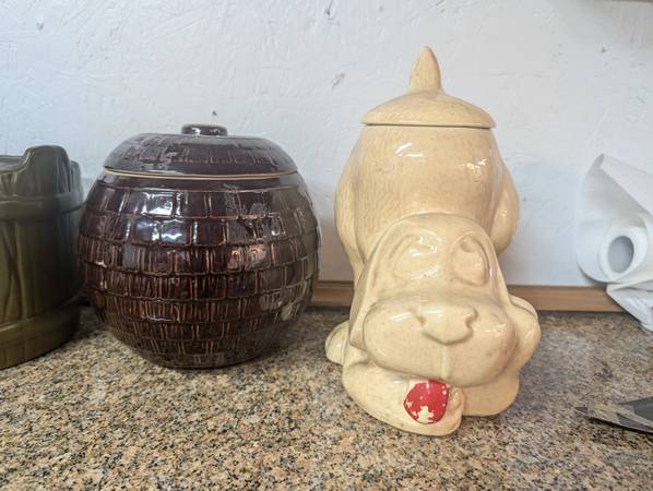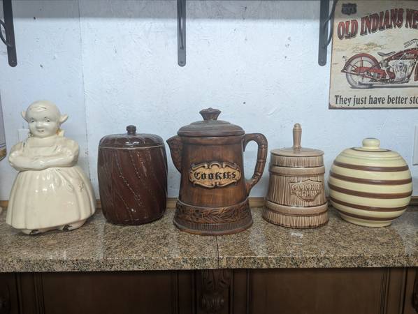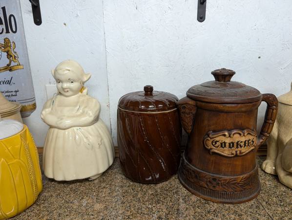 I have 18 McCoy and other vintage cookie jars for sale. $20 each. Located in Shelbyville Six99-zero888