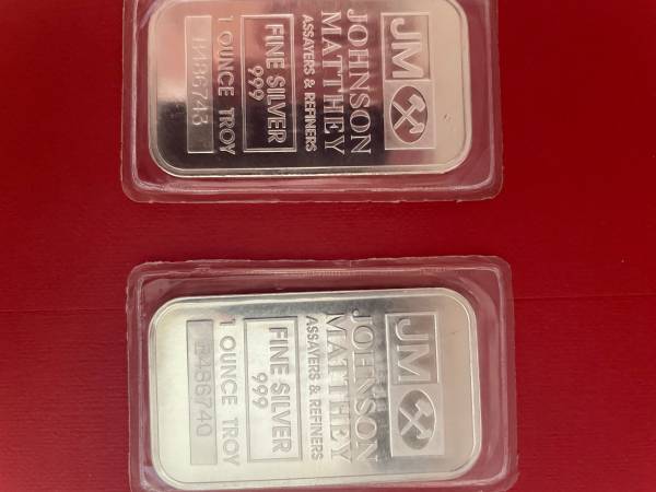 Johnson Matthey (2) 1 ounce silver bars for sale. Great condition. Cash only. Meet in safe location. Will accept spot. Thanks.