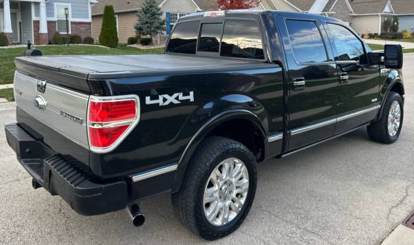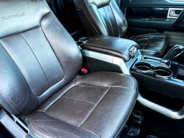 For sale is this LOADED 2012 Ford F-150 Platinum SuperCrew 4x4 with the 3.5L EcoBoost V6. Runs strong, shifts smooth, and drives solid with 226K miles. 4WD works as it should and is great to use when needed! ONLY 3 owners with 28 certified service to show how well its been maintained including a fresh oil change. It’s smooth, powerful, and ready to go. At 209,665 miles the Flywheel/flexplate and Starter replaced. Loaded with luxury — heated and cooled leather seats, dual-panel sunroof, navigation, Sony premium sound, backup camera, remote start, tow package with towing capcity up to 11,300 lbs, and 20-inch chrome wheels. The premium brown leather interior looks good for the year and miles with minimal wear and the Tuxedo Black exterior shines from a fresh detail, some minor rust but a steal at this price! A strong, quiet, and comfortable truck that’s just as capable as it is classy. This truck is built tough and runs very well!